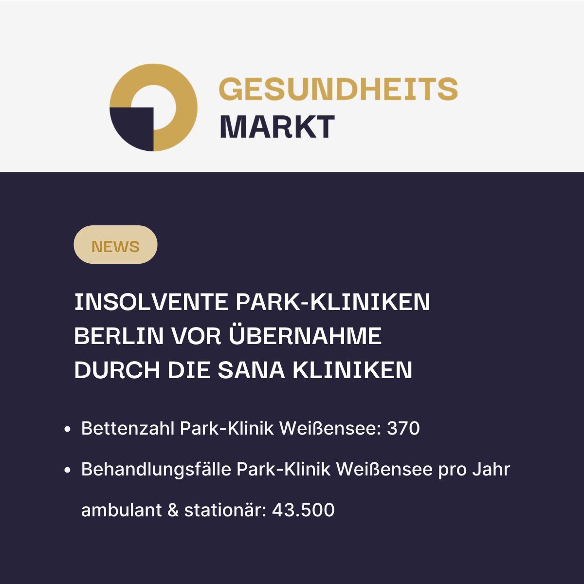 Die Sana Kliniken planen die Übernahme der insolventen Park-Kliniken Berlin. Das geht aus einer entsprechenden Meldung des Bundeskartellamtes hervor. Sowohl die Schlosspark-Klinik als auch die Park-Klinik hatten im vergangenen Jahr Insolvenz anmelden müssen.