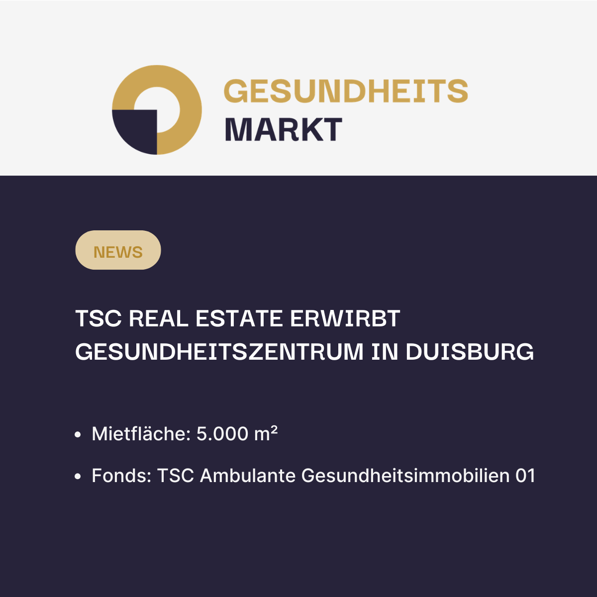 TSC Real Estate erwirbt Gesundheitszentrum in Duisburg